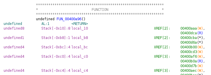 Ghidra is baie nuttig om die offset vir ’n buffer overflow te vind danksy die inligting oor die posisie van die plaaslike veranderlikes.