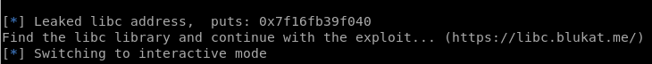 Op hierdie manier het ons die puts-funksie bedrieg om die adres in geheue van die funksie puts (wat binne die libc biblioteek is) te druk. Nou dat ons daardie adres het, kan ons soek watter libc weergawe gebruik word.