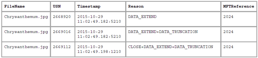 Die USN Journal (Update Sequence Number Journal) is ’n kenmerk van die NTFS (Windows NT lêerstelsel) wat volume veranderinge opneem. Die UsnJrnl2Csv gereedskap maak dit moontlik om hierdie veranderinge te ondersoek.