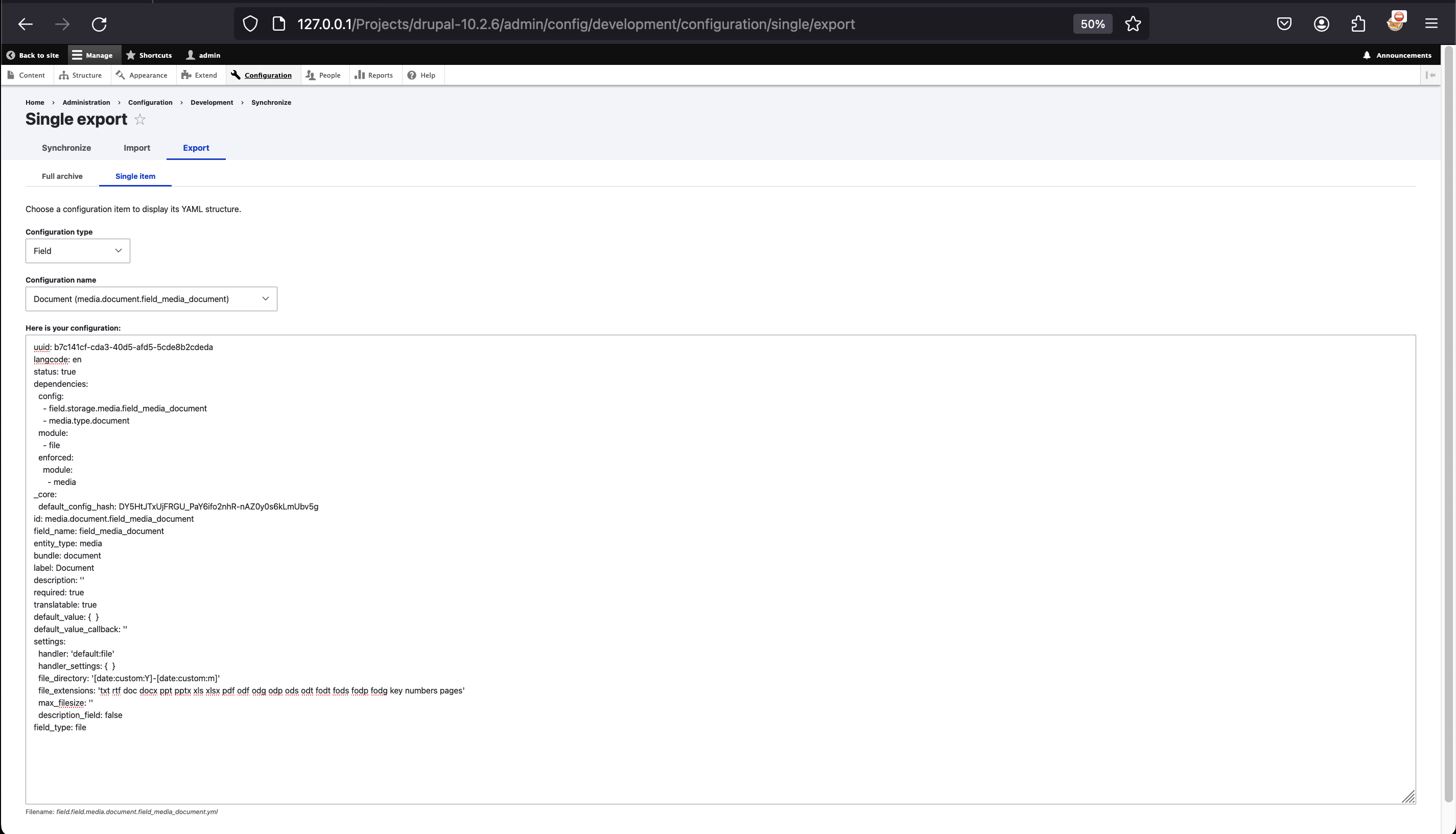 - /admin/config/development/configuration/single/export
