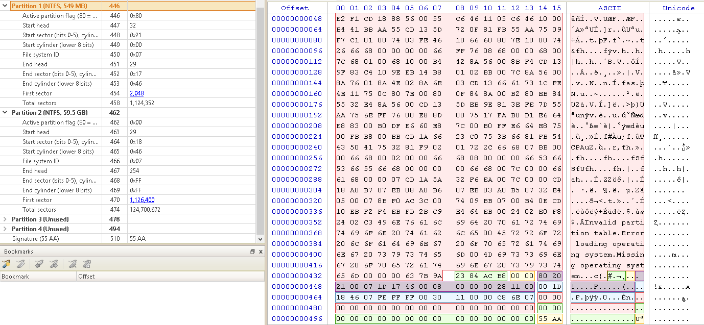 | 0 (0x00) | 446(0x1BE) | Bootcode |