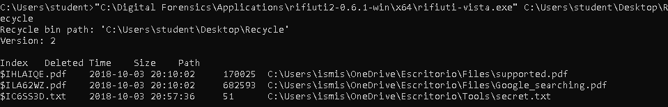.\rifiuti-vista.exe C:\Users\student\Desktop\Recycle
