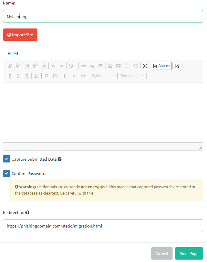 - Bereite die Webseite vor, um die Zugangsdaten zu stehlen