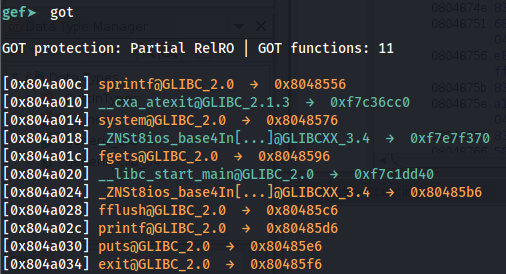 Χρησιμοποιώντας το GEF μπορείτε να ξεκινήσετε μια συνεδρία αποσφαλμάτωσης και να εκτελέσετε got για να δείτε τον πίνακα got: