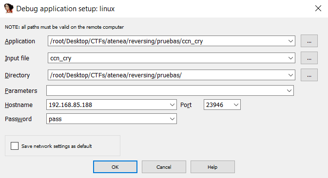 gdbserver --multi 0.0.0.0:23947 (στην IDA πρέπει να συμπληρώσετε τη απόλυτη διαδρομή του εκτελέσιμου στη μηχανή Linux και στη μηχανή Windows)