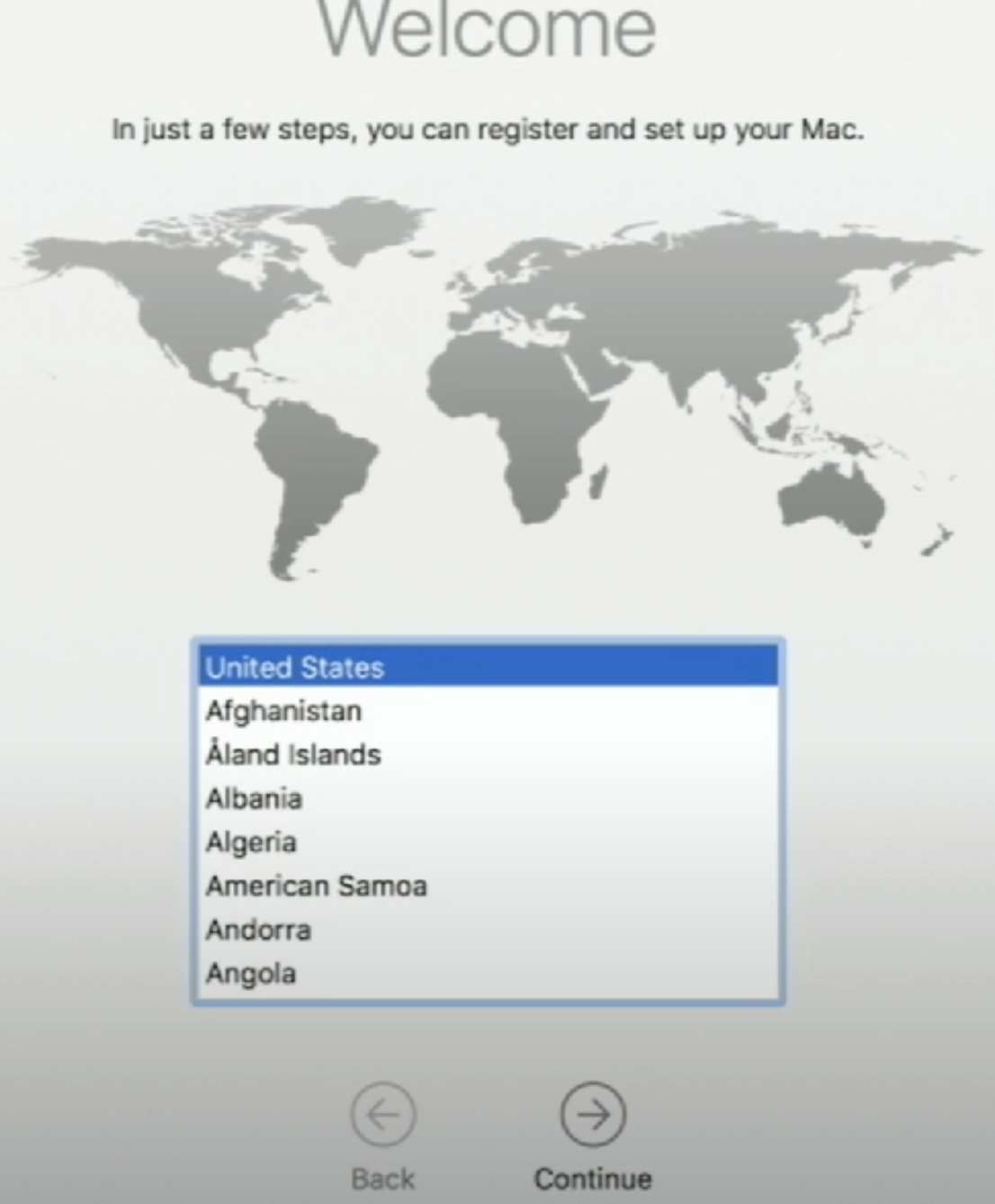 Αυτό το μέρος της διαδικασίας συμβαίνει όταν ένας χρήστης εκκινεί ένα Mac για πρώτη φορά (ή μετά από πλήρη διαγραφή)
