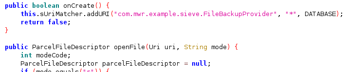 Όταν ελέγχετε τον κώδικα του Content Provider, κοιτάξτε επίσης για συναρτήσεις που ονομάζονται όπως: query, insert, update και delete: