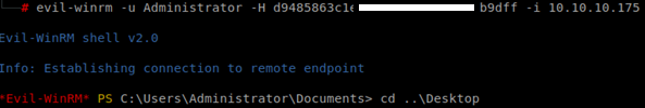 evil-winrm -u <username> -H <Hash> -i <IP>