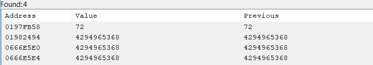 Μόλις επιλέξετε μία από αυτές τις επιλογές, ο debugger θα συνδεθεί με το πρόγραμμα και θα εμφανιστεί ένα νέο κενό παράθυρο. Τώρα, παίξτε το παιχνίδι και τροποποιήστε αυτή τη τιμή (χωρίς να επανεκκινήσετε το παιχνίδι). Το παράθυρο θα πρέπει να είναι γεμάτο με τις διευθύνσεις που τροποποιούν την τιμή:
