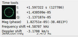 Επιπλέον, μια διαφορετική συχνότητα “παριστάνεται” από το γράφημα IQ με μια ταχύτητα επιτάχυνσης γύρω από τον κύκλο (έτσι στο SysDigger επιλέγοντας το σήμα το γράφημα IQ γεμίζει, αν βρείτε μια επιτάχυνση ή αλλαγή κατεύθυνσης στον δημιουργημένο κύκλο αυτό θα μπορούσε να σημαίνει ότι αυτό είναι FM):