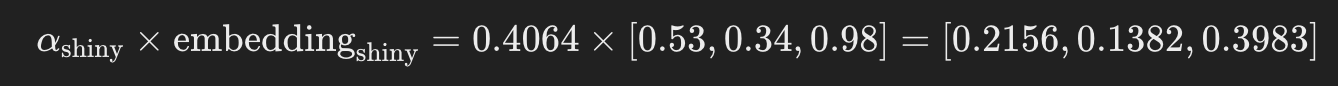 This context vector represents the enriched embedding for the word “shiny,” incorporating information from all words in the sentence.