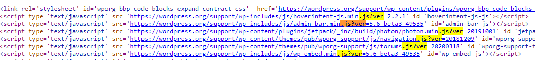 curl -H 'Cache-Control: no-cache, no-store' -L -ik -s https://wordpress.org/support/article/pages/ | grep http | grep -E '?ver=' | sed -E 's,href=|src=,THIIIIS,g' | awk -F "THIIIIS" '{print $2}' | cut -d "'" -f2