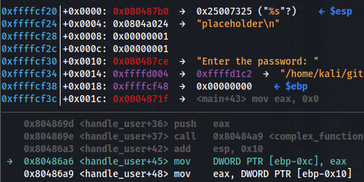 # Now, in the address were you have stopped, check were are the scanf values saved