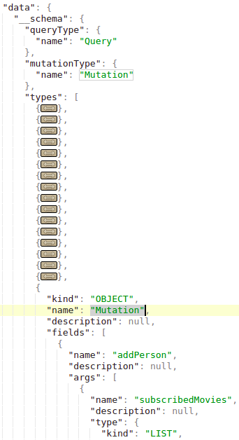 De todas formas, ya lo sabíamos: en la sección Basic Enumeration se propuso una consulta que nos mostraba toda la información necesaria: query={__schema{types{name,fields{name, args{name,description,type{name, kind, ofType{name, kind}}}}}}}