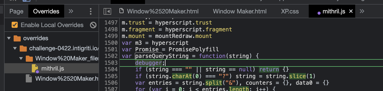 Esto copiará el archivo JS localmente y podrás modificar esa copia en el navegador. Así que solo agrega el debugger; donde quieras, guarda el cambio y recarga la página, y cada vez que accedas a esa página web tu copia local de JS se cargará y tu comando de depuración se mantendrá en su lugar: