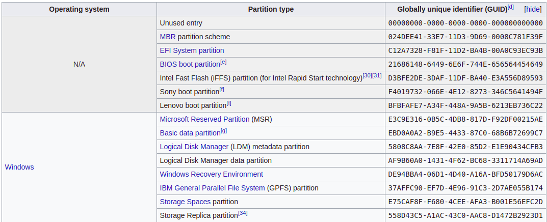 - https://en.wikipedia.org/wiki/GUID_Partition_Table