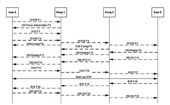 Ce n’est pas mentionné, mais User B doit avoir envoyé un REGISTER message à Proxy 2 avant de pouvoir recevoir des appels.