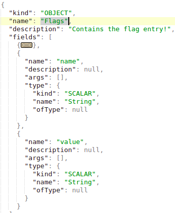 Dans l’introspection, vous pouvez trouver quel objet vous pouvez interroger directement (parce que vous ne pouvez pas interroger un objet simplement parce qu’il existe). Dans l’image suivante, vous pouvez voir que le “queryType” s’appelle “Query” et que l’un des champs de l’objet “Query” est “flags”, qui est aussi un type d’objet. Par conséquent, vous pouvez interroger l’objet “flags”.