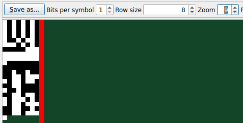 Enfin, en augmentant le Zoom et en changeant la taille de la ligne, vous pouvez voir les bits (et vous pouvez tout sélectionner et copier pour obtenir tous les bits) :