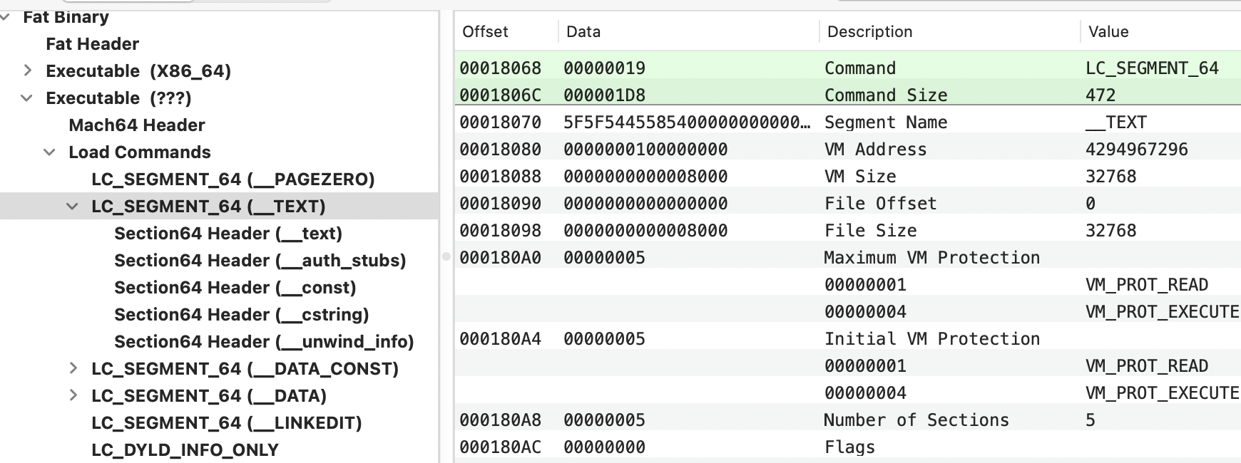 # Checking the mac header of a binary