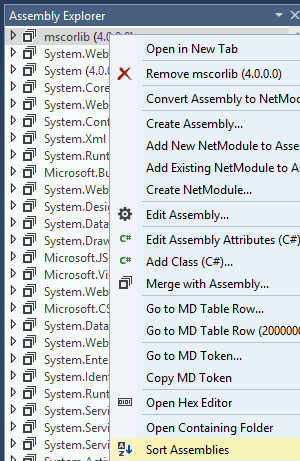 Assembly Explorer में किसी भी मॉड्यूल पर राइट-क्लिक करें और Sort Assemblies पर क्लिक करें: