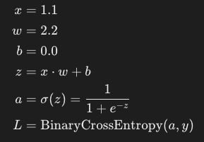 Vogliamo calcolare il gradiente della perdita L rispetto al peso w e al bias b.