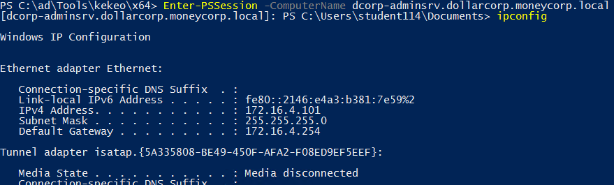 Enter-PSSession -ComputerName dcorp-adminsrv.dollarcorp.moneycorp.local [-Credential username]