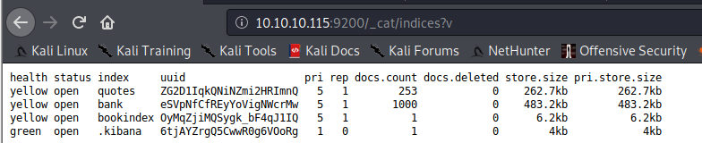 Il protocollo utilizzato per accedere a Elasticsearch è HTTP. Quando lo accedi tramite HTTP troverai alcune informazioni interessanti: http://10.10.10.115:9200/