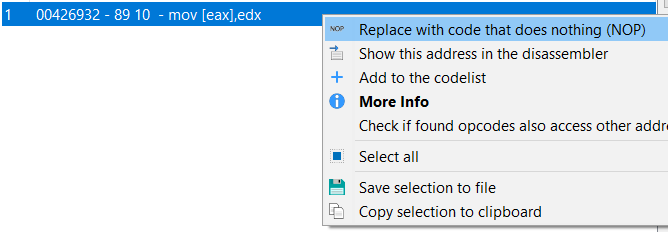 Ora che hai trovato l’indirizzo che modifica il valore, puoi modificare il codice a tuo piacimento (Cheat Engine ti consente di modificarlo rapidamente in NOP):