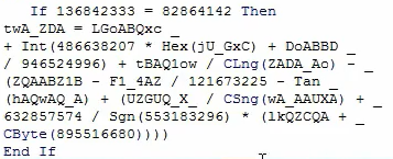 È molto comune trovare codice spazzatura che non viene mai utilizzato per rendere più difficile il reversing della macro.