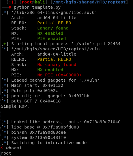 このステップでは、実行中にpwntoolsによってすべてが見つかるため、何も実行する必要はありません。