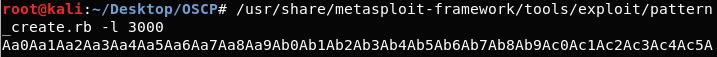 /usr/share/metasploit-framework/tools/exploit/pattern_create.rb -l 3000