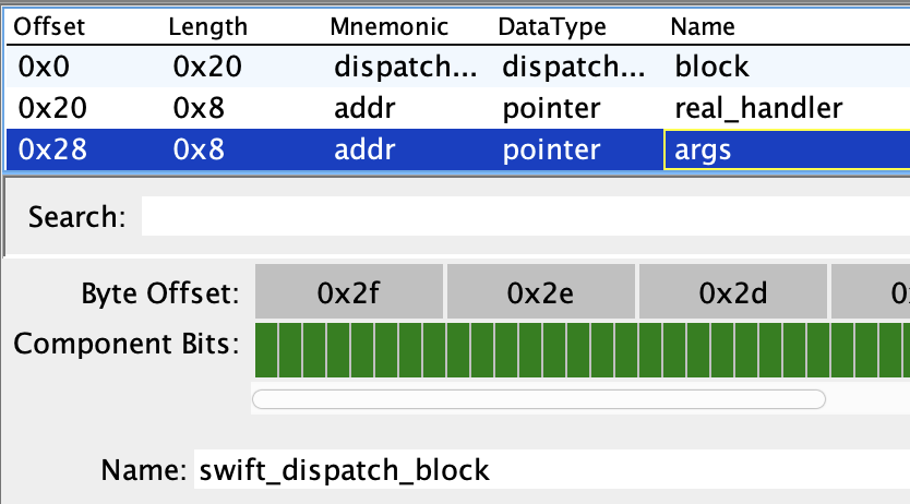 現在、GhidraはObjectiveC dispatch_block_t 構造体や swift_dispatch_block 構造体を理解していません。