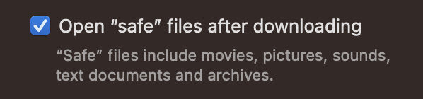 Safari에서 파일이 다운로드될 때, “안전한” 파일이라면 자동으로 열립니다. 예를 들어, zip 파일을 다운로드하면 자동으로 압축이 해제됩니다: