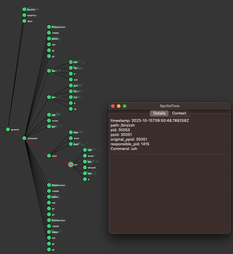 **sudo eslogger fork exec rename create > cap.json**와 같은 명령으로 Mac을 모니터링해야 합니다(이 작업을 수행하는 터미널은 FDA가 필요합니다). 그런 다음 이 도구에서 json을 로드하여 모든 관계를 볼 수 있습니다:
