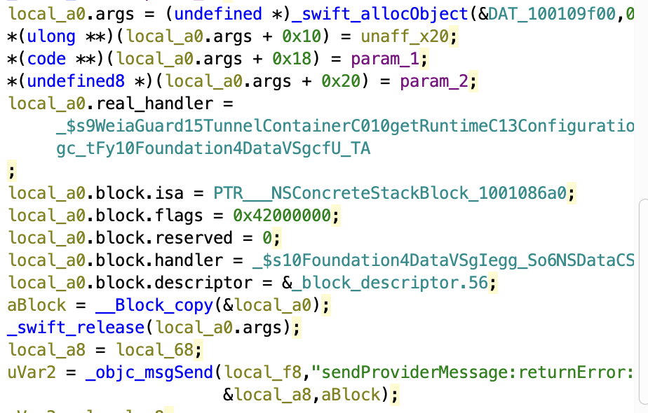 현재 Ghidra는 ObjectiveC dispatch_block_t 구조체와 swift_dispatch_block 구조체를 이해하지 못합니다.