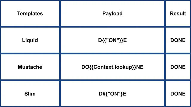 가장 효율적인 template injection polyglots와 44개 주요 template engines의 예상 응답을 함께 보여주는 대화형 표입니다.