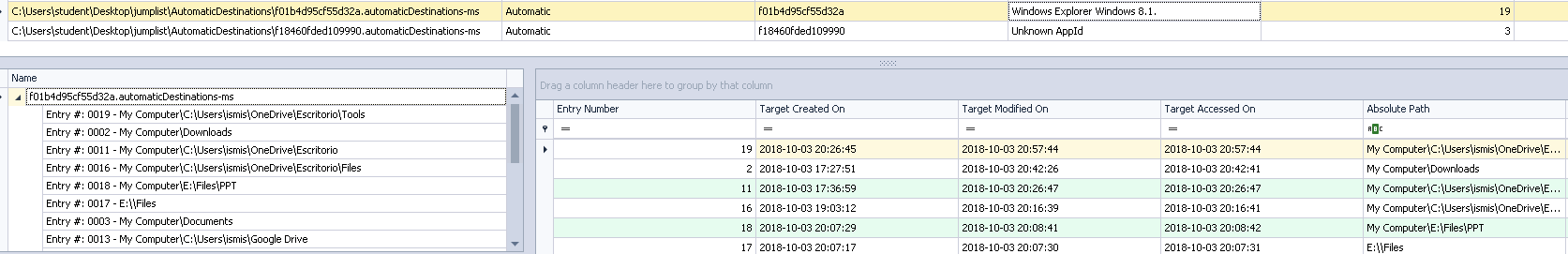 (Zauważ, że znaczniki czasowe podane przez JumplistExplorer odnoszą się do samego pliku jumplist)