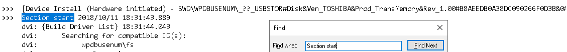 Sprawdź plik C:\Windows\inf\setupapi.dev.log, aby uzyskać znaczniki czasowe dotyczące momentu, w którym połączenie USB zostało nawiązane (szukaj Section start).