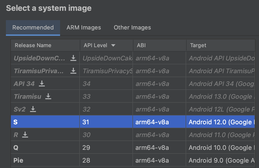 Gdy pobierzesz obraz Androida, którego chcesz użyć, możesz wyświetlić listę wszystkich pobranych obrazów Androida za pomocą: