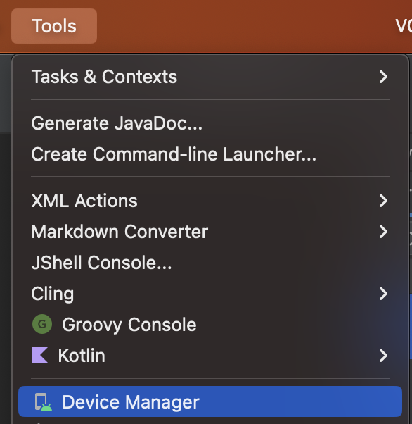 avdmanagerem/Users/<username>/Library/Android/sdk/tools/bin/avdmanagere oemulatorem/Users/<username>/Library/Android/sdk/emulator/emulatorse você os tiver instalados.