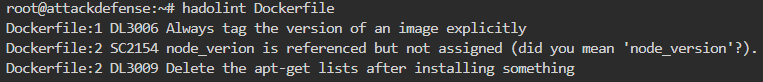 - Você pode usar a ferramenta https://github.com/buddy-works/dockerfile-linter para inspecionar seu Dockerfile e encontrar todo tipo de misconfiguração. Cada misconfiguração terá um ID; você pode encontrar aqui https://github.com/buddy-works/dockerfile-linter/blob/master/Rules.md como corrigir cada uma delas.