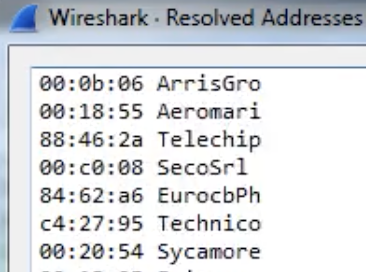Pod Statistika –> Rešene adrese možete pronaći nekoliko informacija koje je wireshark “rešio”, kao što su port/transport do protokola, MAC do proizvođača itd. Zanimljivo je znati šta je uključeno u komunikaciju.
