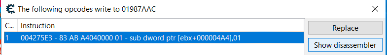 Sada kada ste pronašli adresu koja modifikuje vrednost, možete modifikovati kod po svojoj želji (Cheat Engine vam omogućava da ga brzo modifikujete za NOPs):