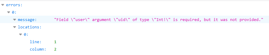 Kumbuka kwamba niligundua kuwa ningeweza kuomba vigezo βuserβ na βpasswordβ kwa sababu ikiwa nitajaribu kutafuta kitu kisichokuwepo (query={user(uid:1){noExists}}) napata kosa hili: