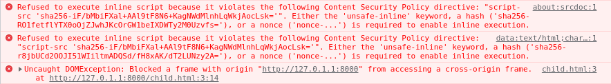 Hata hivyo, hata thamani ya none ya CSP itaruhusu utekelezaji wa iframes ambazo zinaweka URL (kamili au njia tu) katika sifa ya src.