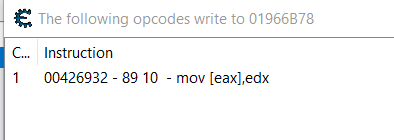Kufuata hatua zilizopita, pata wapi thamani unayovutiwa nayo iko. Kisha, kwa kutumia βFind out what writes to this addressβ pata anwani ipi inaandika thamani hii na ubofye mara mbili ili kupata mtazamo wa disassembly: