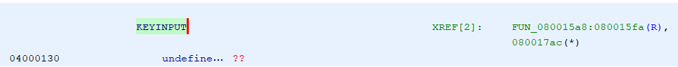 Hivyo, katika aina hii ya programu, sehemu ya kuvutia itakuwa jinsi programu inavyoshughulikia pembejeo za mtumiaji. Katika anwani 0x4000130 utaona kazi inayopatikana mara nyingi: KEYINPUT.