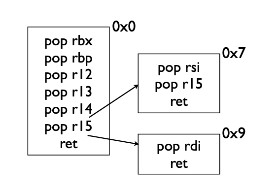 rdi ve rsi’yi ret2csu gadget’ından kontrol etmenin bir başka yolu, belirli ofsetlere erişmektir: